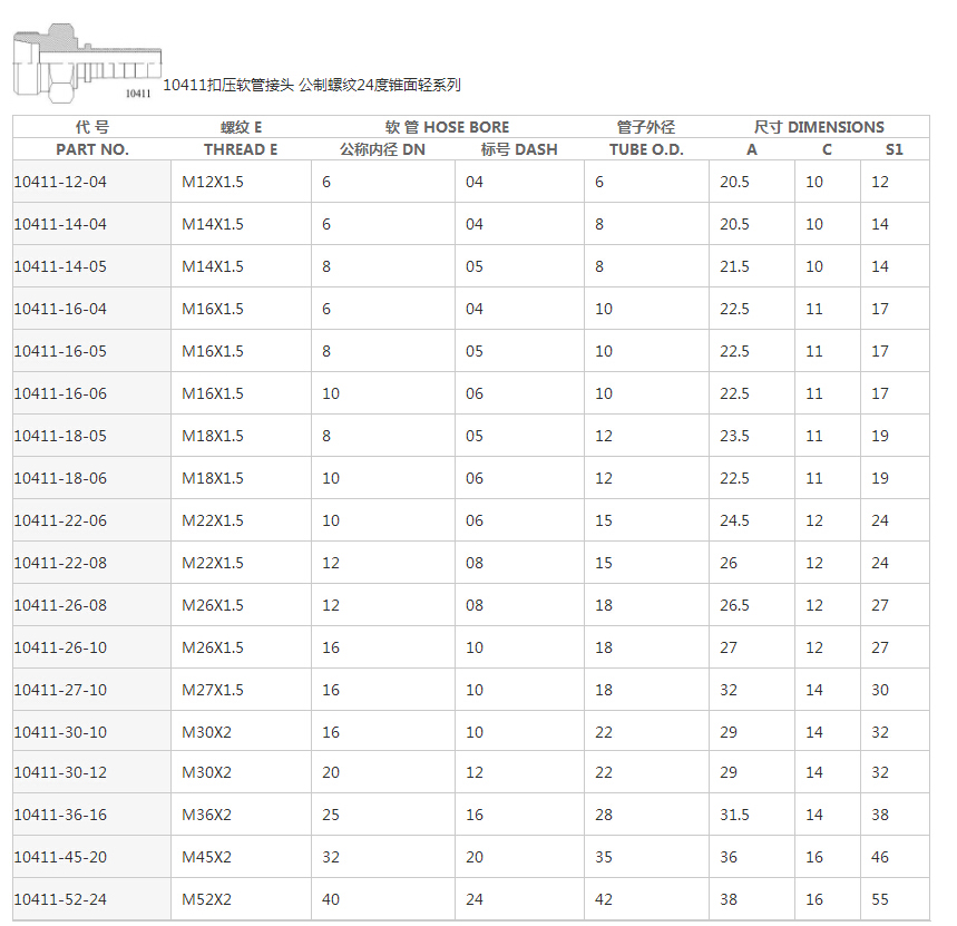 10411公制外螺紋24°內錐輕系列